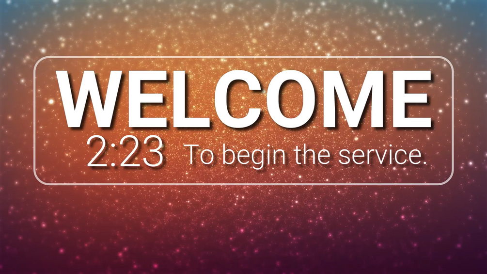''Welcome, 5:00 to begin the service'' countdown 1920x1080 high definition and beautiful background, perfect to use on big projector screens.
